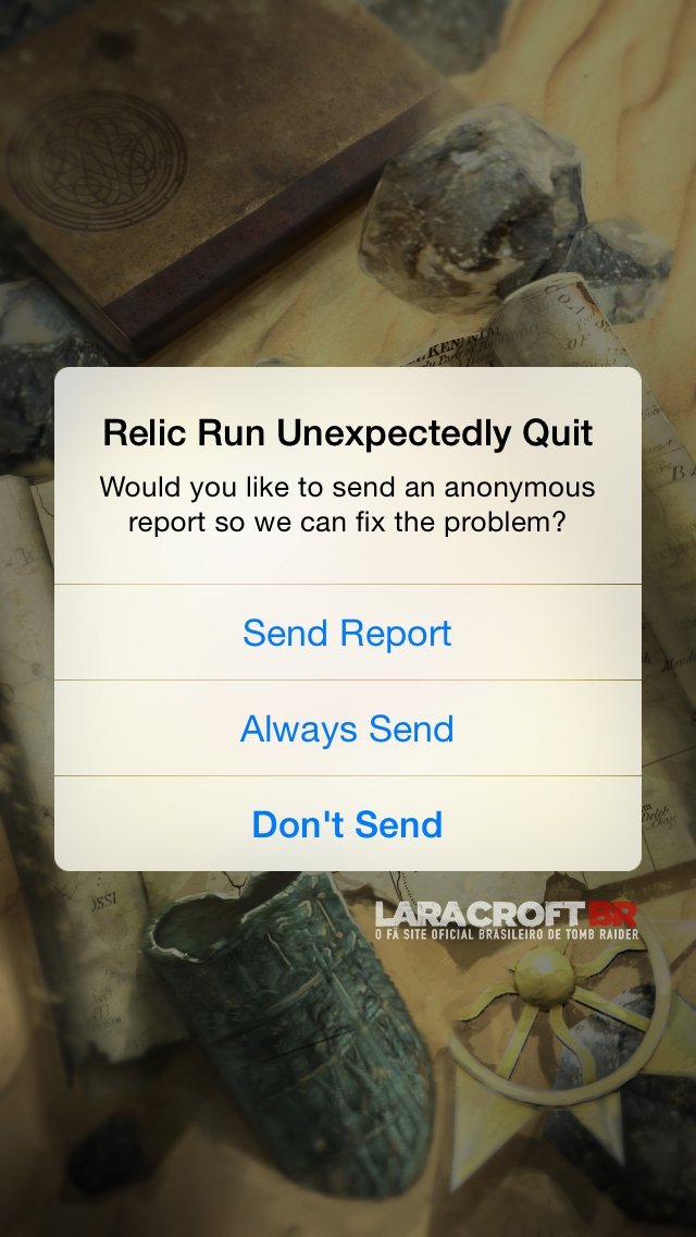 O jogo tem seus ‘lags’, ou seja, ele trava em certos momentos, e dependendo de como eles travam, não conseguimos recuperar o ritmo da corrida e batemos a cabeça da Lara direto em uma pilastra, ou mesmo o jogo trava por meio segundo e quando vemos a personagem já morreu. Além disso, tivemos alguns ‘crashes’, fechando o jogo sozinho, e depois reiniciando com a informação “o jogo foi fechado inesperadamente”. Me faz pensar que o jogo pode ser um pouquinho pesado as vezes, ou que ainda ele não está tão bem adaptado, ou com bugs precisando ser corrigidos. É perceptível que o jogo irá requerer smartphones com Android mais modernos para funcionar, visto que não fomos capazes de rodá-lo no Galaxy S3. Ainda assim, não podemos afirmar, uma vez que não dispunhamos de um aparelho Android compatível.