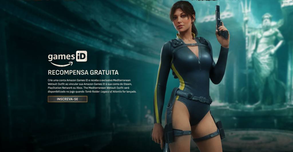 E tem mais! Ao criar uma conta Amazon Games ID e vincular à sua conta Playstation, Xbox ou Steam, A roupa de mergulho mediterrânea será disponibilizada quando o Tomb Raider: Legacy of Atlantis for lançado.